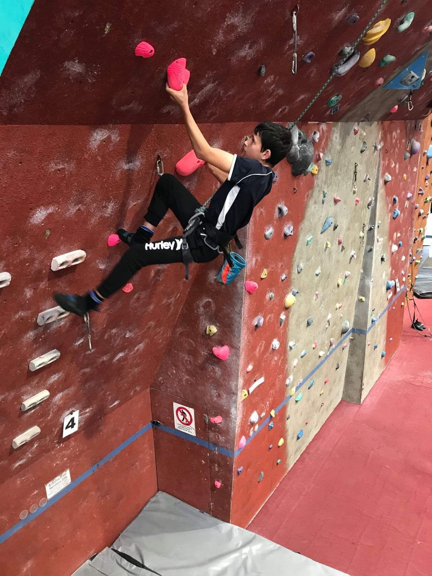 Climbing is a fun, challenging activity that runs throughout Terms 1, 2 and 3. It caters for all levels of climbers from novice through to national competitors. Our team of regular climbers is approximately 15 - 20. Each session at Extreme Edge is a fun training overseen by a climbing coach. The aim of the trainings is to increase the level of climbing competence from each student. Lead climbing and belaying are worked toward throughout the year. Students need to get themselves to Extreme Edge however if this is an issue please make contact.